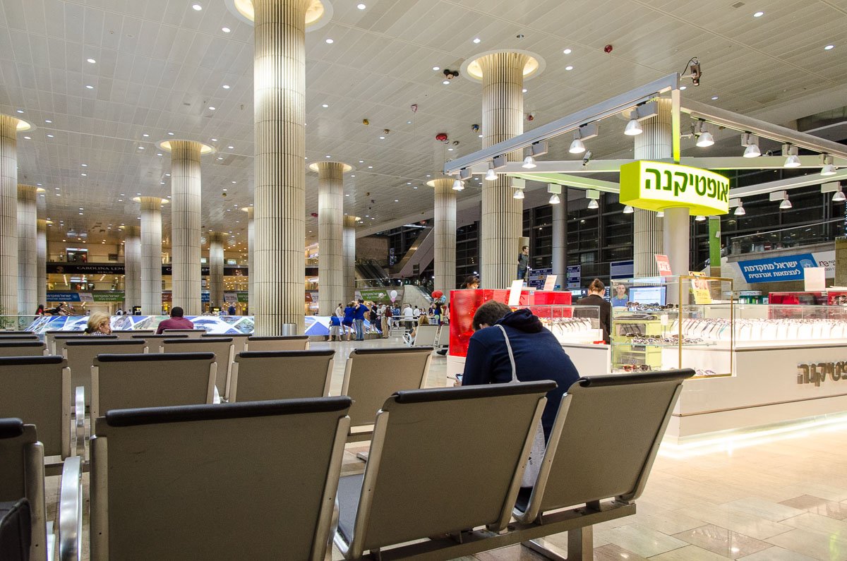 Gegen 4:00 Uhr machten wir uns auf den Weg in den dritten Stock, in dem das Einchecken stattfindet. Dort war allerhand los, auch die Schalter unserer Fluglinie waren bereits besetzt und fertigten Fluggäste ab. Ehe wir dort unsere Koffer aufgeben und unsere Check-In Papiere abholen konnten, mussten wir uns jedoch zunächst – wie die anderen Passagiere auch – einer ausführlicheren Befragung des Sicherheitspersonals stellen. Was wir in Israel gemacht hätten, weshalb wir das Land besucht hätten, wie unsere Beziehung zueinander sei, ob wir die Koffer selbst gepackt hätten und uns jemand etwas mitgegeben hätte… Kristine musste auch erklären, weshalb sie einen Ägyptischen Stempel im Pass hat. Nach der Gepäckausgabe kamen wir dann zu der normalen Pass- und Personenkontrolle. Während ich mich keiner besonderen Konrolle unterziehen musste, traf es Kristine härter: Sie wurde in einen gesonderten Bereich geführt und ihr Handgepäck wurde genauestens inspiziert, wobei bei den einzelnen Gegenstände auch Proben mit Pinseln genommen und untersucht wurden.